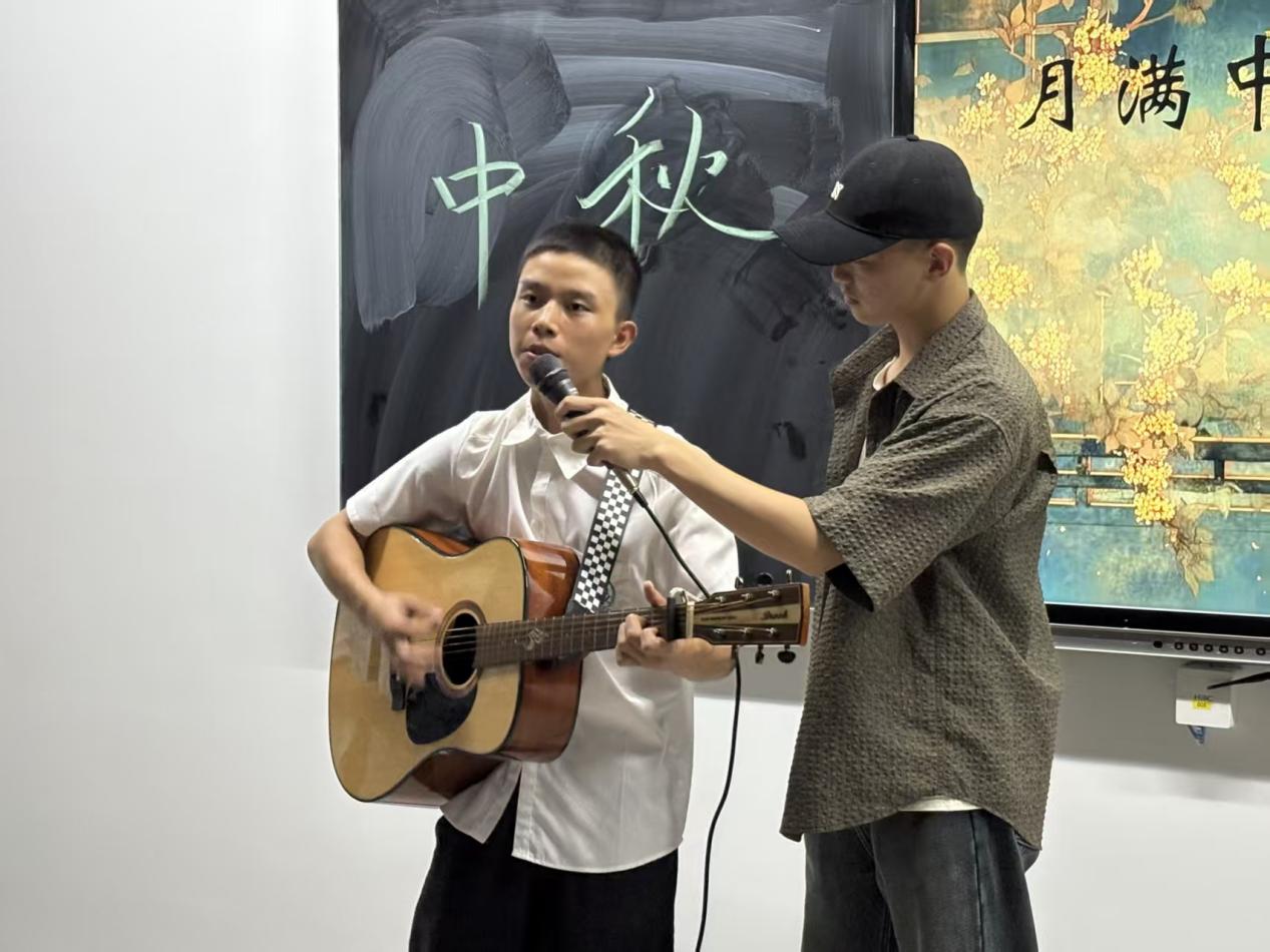 庆生环节后,晚会正式进入高潮。新生们各展所长,带来了精心准备的表演:有活力满满的歌曲演唱,有治愈温暖的吉他弹唱,还有节奏明快的舞蹈串烧等,台下掌声与欢呼声一片。晚会表演间隙,公司精心准备了月饼、饮料及各类零食。新生们围坐一团,在品尝香甜美食的同时,欣赏精彩节目,相互交流军训期间的趣事与感受,现场欢声笑语不断,温馨氛围弥漫在整间教室。